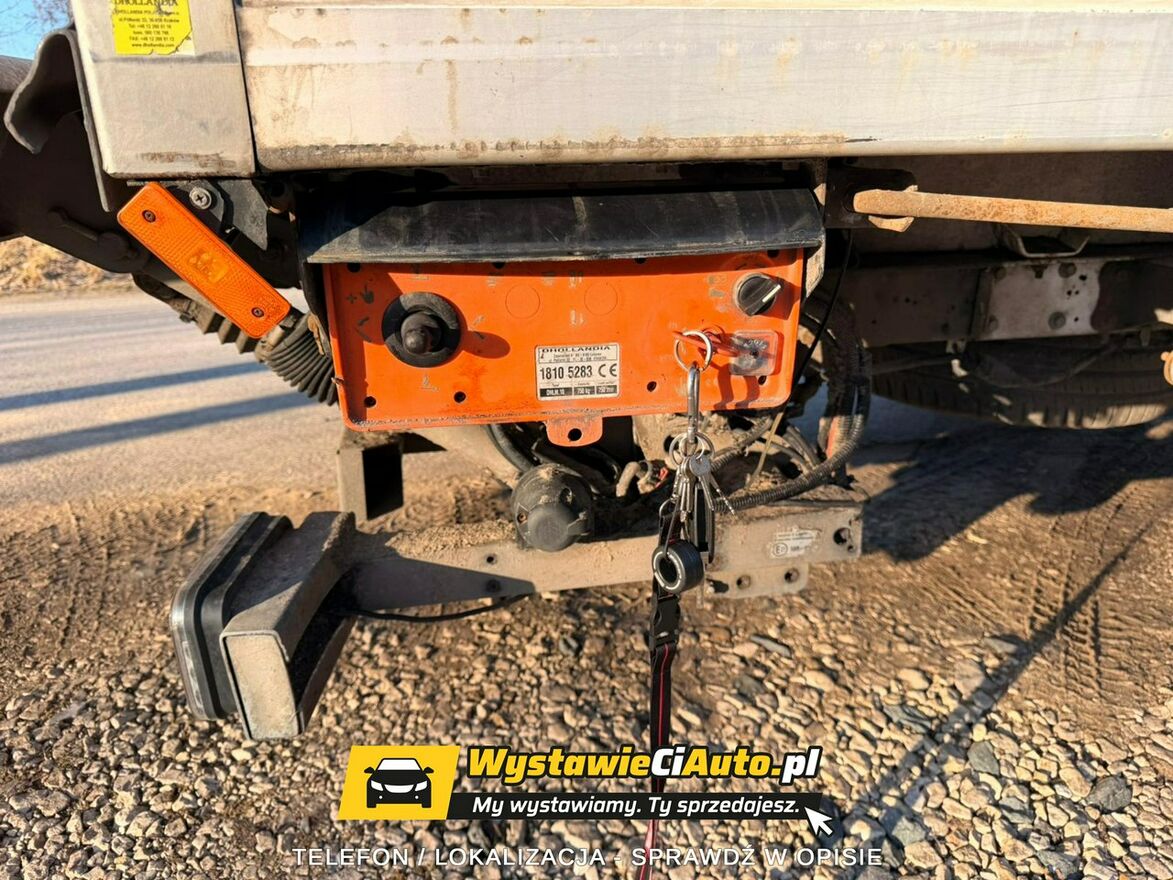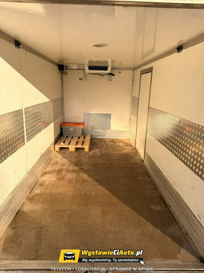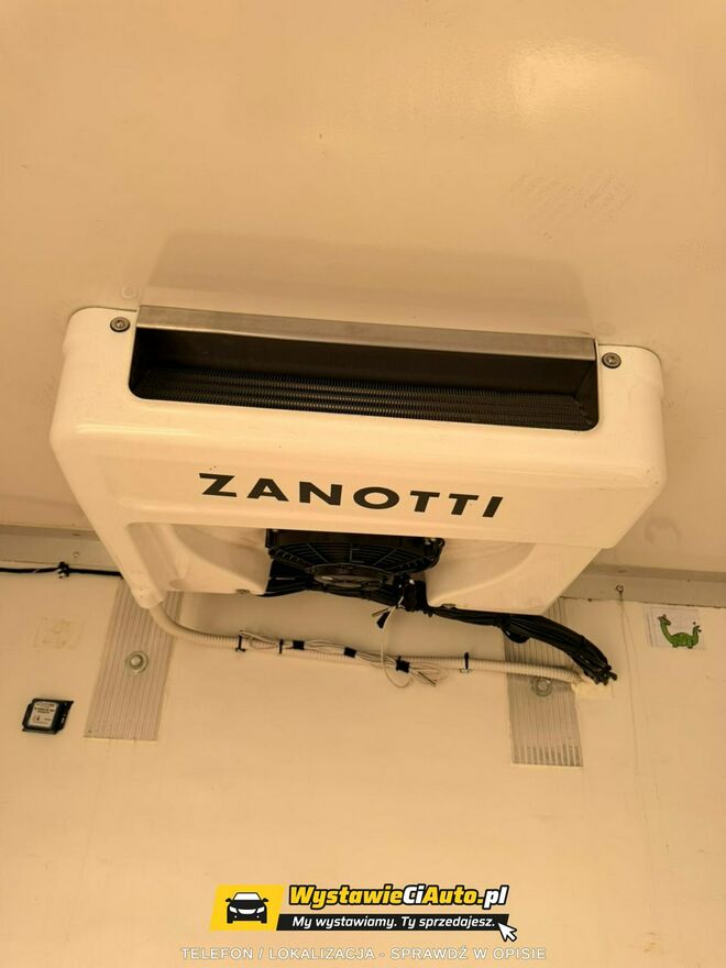 Samochód posiada zabudowę izotermiczną – kontener 8-paletowy. Wyposażony jest w agregat chłodniczy oraz ogrzewanie postojowe Webasto zamontowane w 2023 roku (koszt ok. 30 000 zł – potwierdzenie Fakturą VAT). Dodatkowo samochód posiada windę załadunkową o udźwigu do 750 kg.