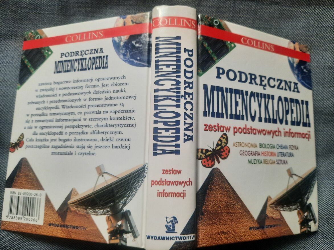 Oferuję "Podręczną miniencyklopedię" z zestawem różnych podstawowych informacji . Wydawnictwo RTW 2003 r. Wydanie pierwsze w tej edycji 2003 r. Wymiar mini w 14/10,5/2,5 cm ,stron 573 . Miniencyklopedia jest w bardzo dobrym stanie praktycznie jak nowa , Mini encyklopedię polecam każdemu encyklopedia przyda się w domu , szkole , itp . Cena 6 zł .Tom