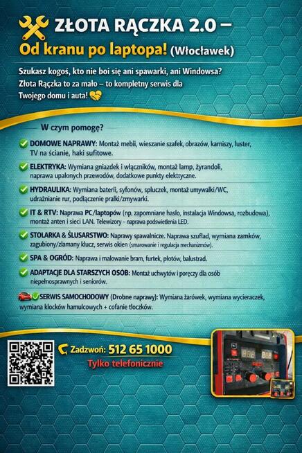️ ZŁOTA RĄCZKA WŁOCŁAWEK -Wszelkie prace remontowo-naprawcze . AGD np. naprawa programatora -Awarie ,w tym sprzęt ...